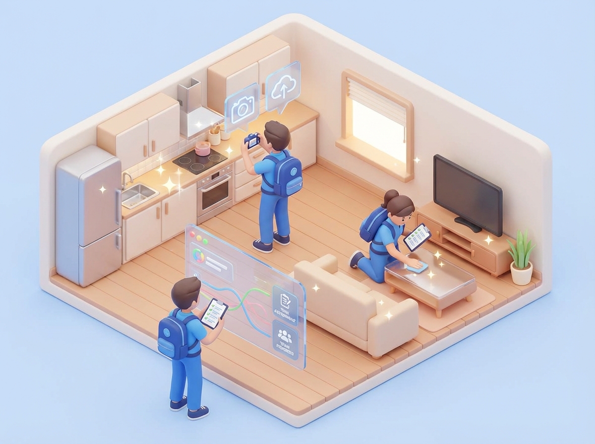 The "verify-then-trust" model: cleaners upload photos of completed tasks before the unit is marked ready.